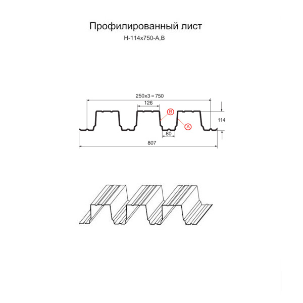 Профилированный лист Н-114 используется, когда необходим материал высокой жёсткости и отличной несущей способности. Его можно без боязни использовать при строительстве таких масштабных зданий, как: спорткомплексы, ТЦ, стадионы, заводы. Также он отлично подойдёт при обустройстве кровель в холодных районах со снежными зимами и порывистыми ветрами, монтаже несъёмной опалубки. Пользуется спросом Н-114 и для различных каркасных построек, возведения внешних стен, межэтажных перекрытий. Своими фундаментальными свойствами он обязан максимальной глубине гофры – 114 мм, а также множественным рёбрам жёсткости. Дополнительную твёрдость ему обеспечивает толщина стали – С-114 изготавливается в диапазоне от 0,8 до 1 мм. Также возможен выбор полезной ширины этого профилированного листа – 600 и 750 мм. Эти варианты различает не только полезная площадь, но и ширина волн, и количество углублений на вершине волны: две при ширине листа 750 мм, одна – для 600 мм.