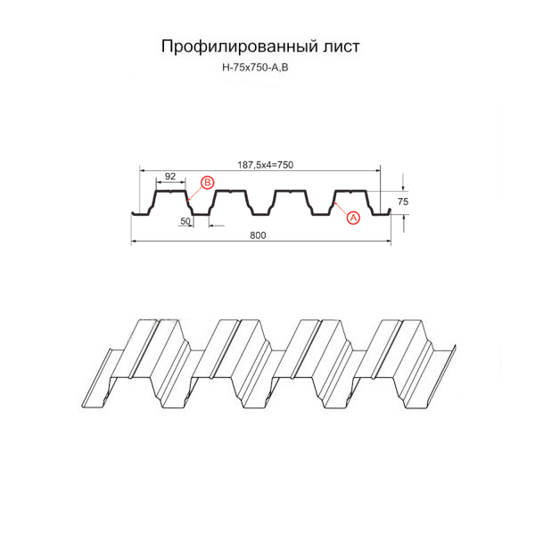Самонесущий профиль Н-75 является одним из наиболее стабильных стройматериалов из тонколистовой стали. Это название он получил потому, что его устойчивость и прочность разрешают ограничиваться меньшим количеством опор. Многочисленные рёбра жёсткости предоставляют возможность использовать его в экстремальных условиях. Этот материал подойдёт при постройке индустриальных и торговых зданий, аграрных объектов| спортивных сооружений. Он выступает в качестве внутренних переборок в зданиях, кровельного покрытия, несъёмной опалубки, несущих элементов в постройках из профлиста, прочных ограждений. Профиль с высотой волны 75 мм превосходно выдерживает значительные динамические и статические воздействия в виде обильного снега и штормового ветра. Хорошую прочность материалу придаёт не только профилирование дополнительного желобка, проходящего вдоль широких гофр, но и толщина металла – от 0,65 до 1 мм, и высота профиля – 75 мм.