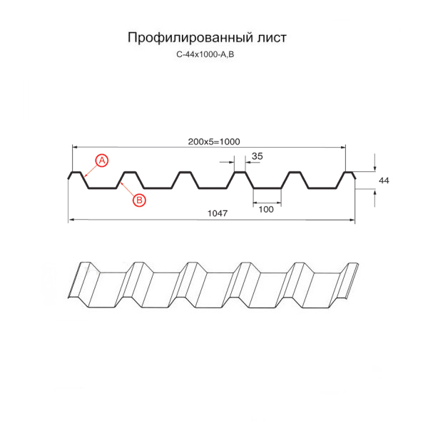 Cамый высокий профиль марки С в ассортименте. Такая маркировка несёт информацию, что это «стеновой» материал, однако разделение профлиста по сфере применения довольно формально. С-44 применяется как в промышленном, так и в гражданском строительстве. Волна этого профиля имеет высоту 44 мм, выбрать толщину стального листа вы сможете сами – от 0,45 до 0,8 мм. С-44 отличается хорошей несущей способностью и улучшенной жёсткостью. Довольно популярный стройматериал для построек, которые подвергаются повышенным нагрузкам. Среди них: гаражи, бытовки, несъёмная опалубка, торговые точки, кровли скатных крыш, ограждения для частных территорий, промышленных зон и стройплощадок.
